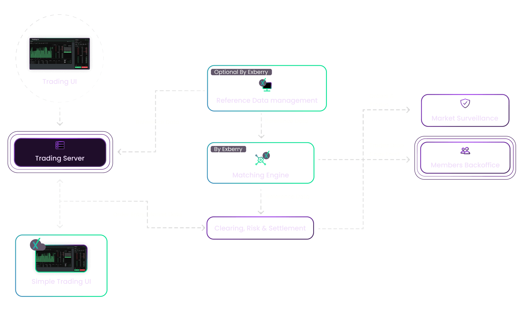 Easily plugged in with any 3rd party components, allowing you to build your market around Exberry’s trading solutions, with any preferred vendor for post-trade and pre-trade solution.